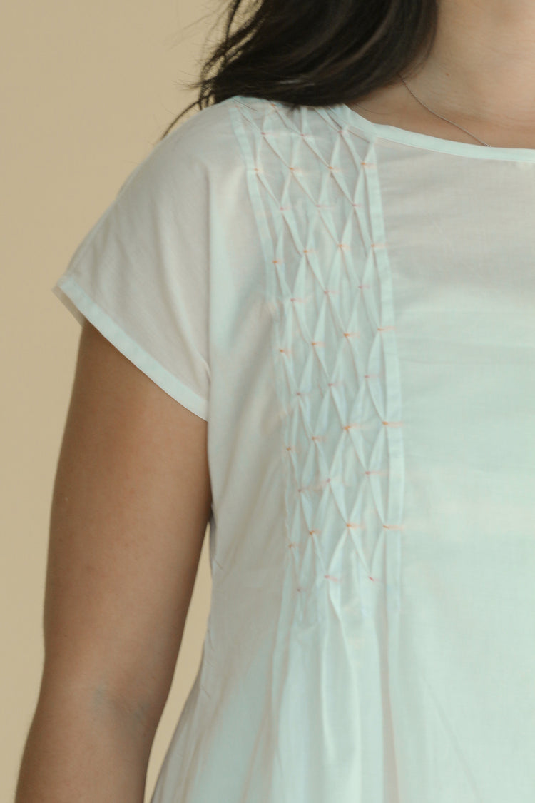 Danika is a labor of love. Taking inspiration from the simple t-shirt dress, we've added some of our favourite details: hand smocked pleated panels and bow tie closures at the back.