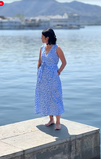 Fitting tip: This one's for the lefties too: the wrap can be tied over right and over left. Wrap the waist ties loosely behind, or cinch tightly for front bows.