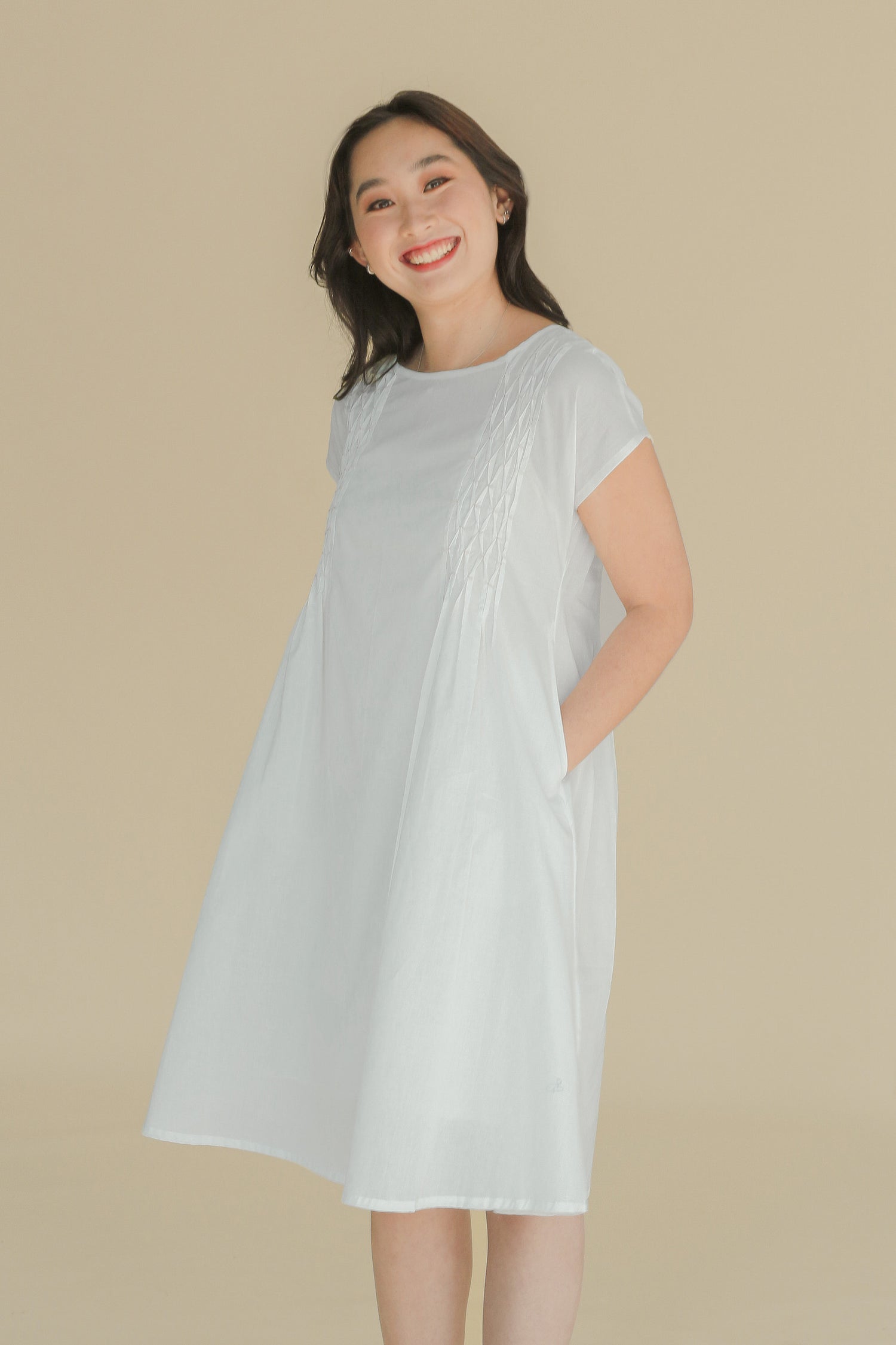 Danika is a labor of love. Taking inspiration from the simple t-shirt dress, we've added some of our favourite details: hand smocked pleated panels and bow tie closures at the back.