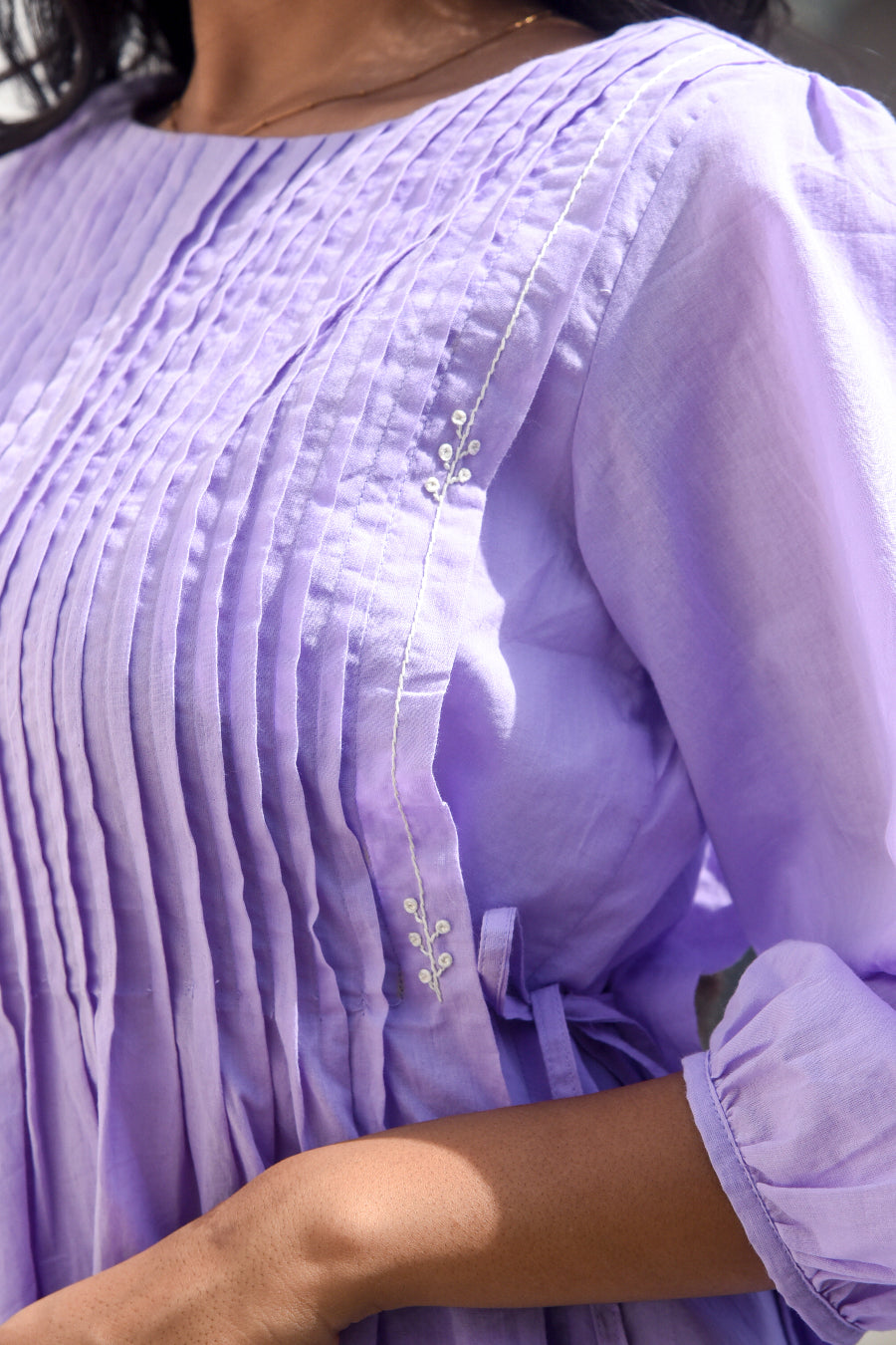 One of our most meticulously crafted dresses featuring carefully laid out and stitched pleats, hand embroidered panels and 3/4 sleeves.