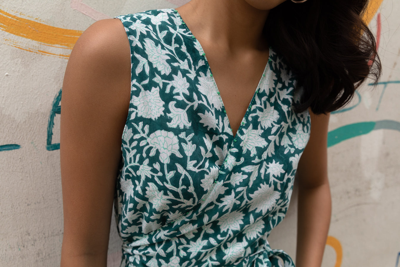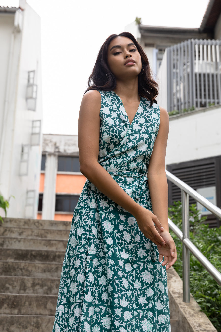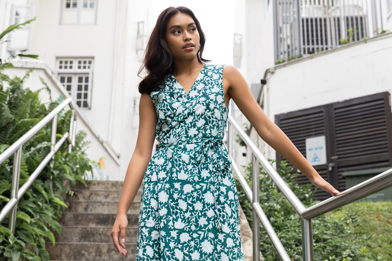 Fitting tip: This one's for the lefties too: the wrap can be tied over right and over left. Wrap the waist ties loosely behind, or cinch tightly for front bows.