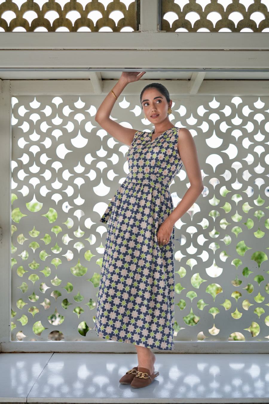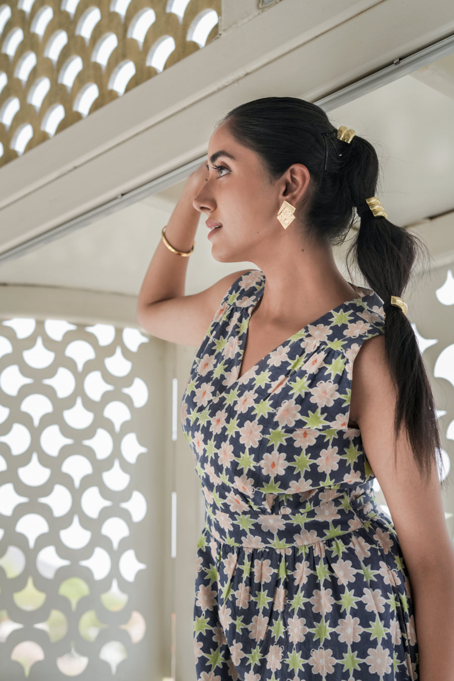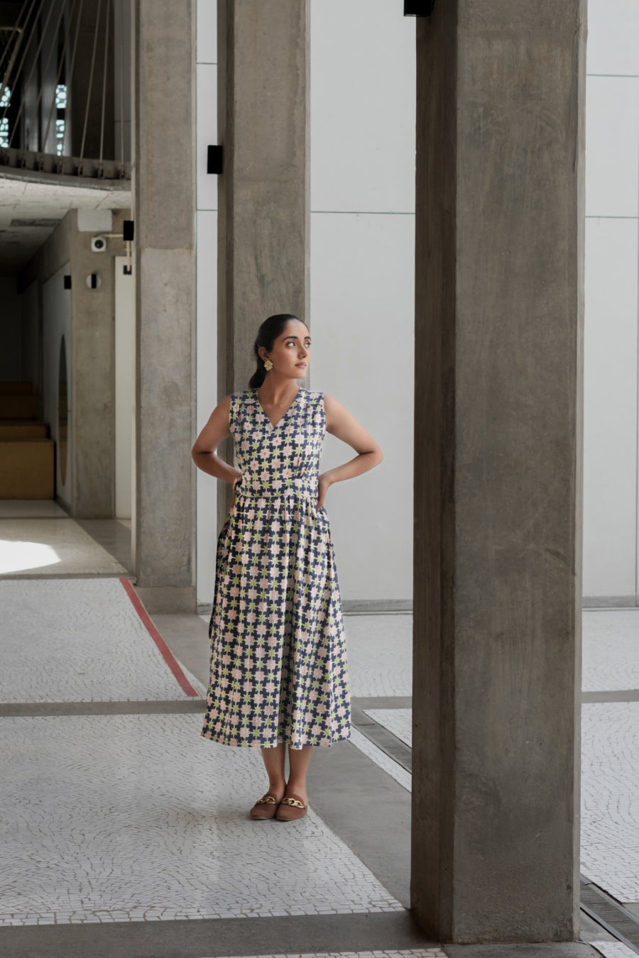 An fresh interpretation of our classic sleeveless Sienna wrap dress, featuring a gathered bodice for more coverage, a thicker waistband for more styling versatility, and a fuller skirt that lends a polished finish.