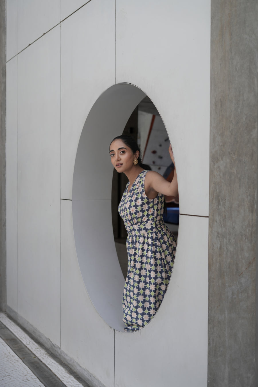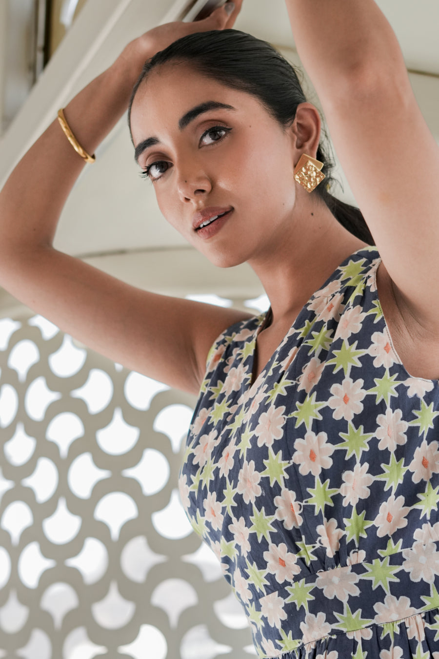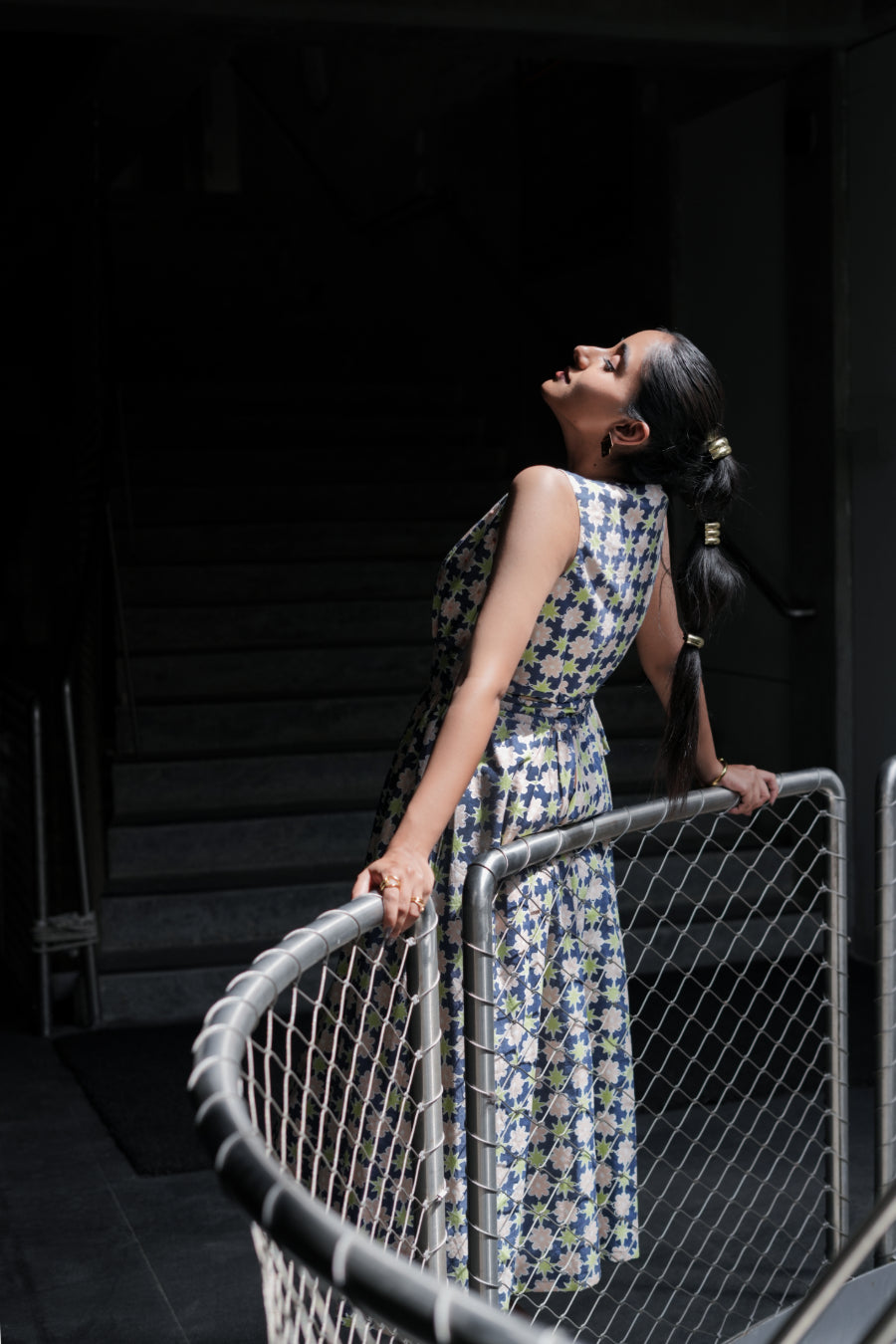Yuvika fits a UK 6, 168cm tall, and wearing a Wray Size 1.