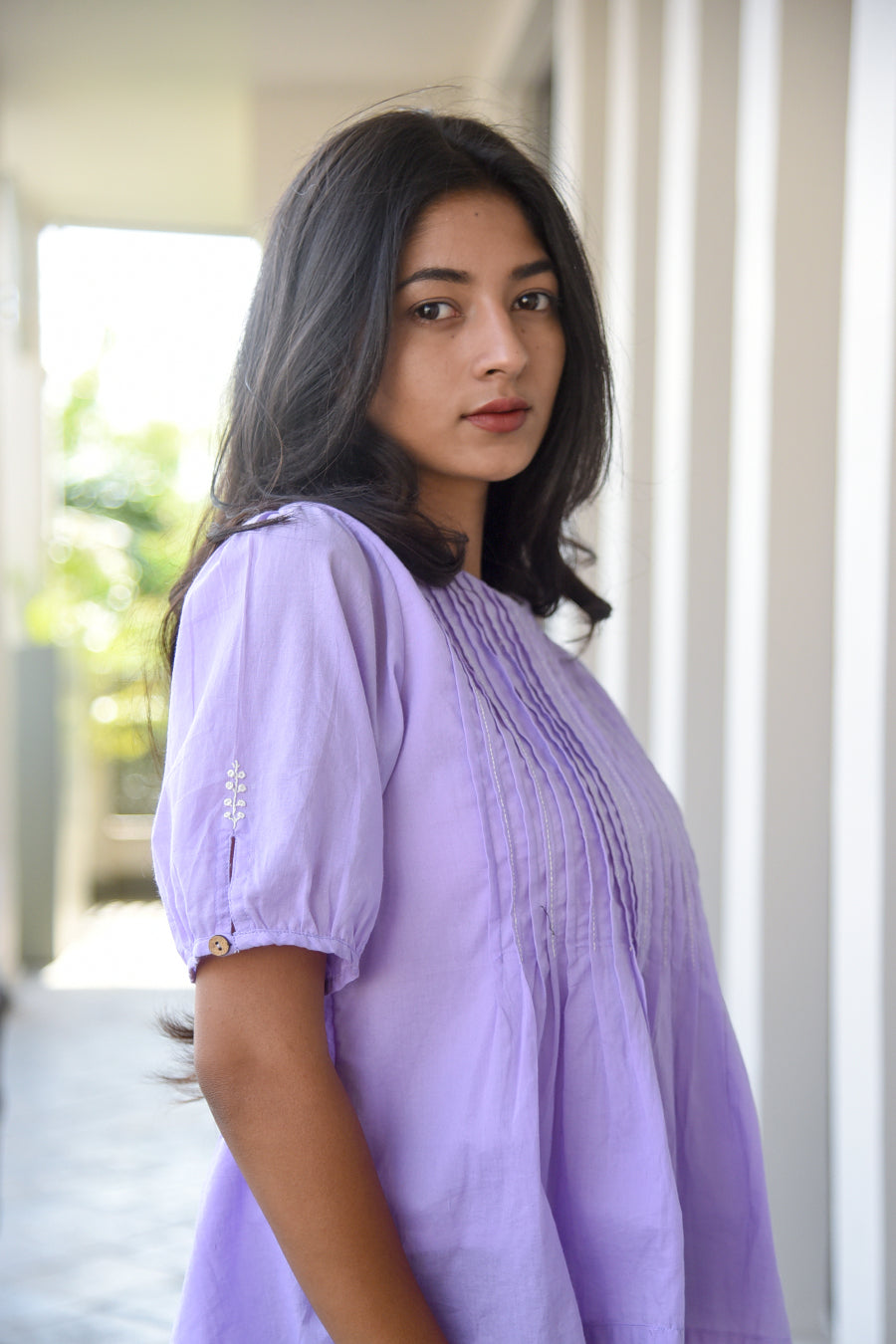 A meticulously crafted blouse featuring pintucks and delicate hand embroidery.